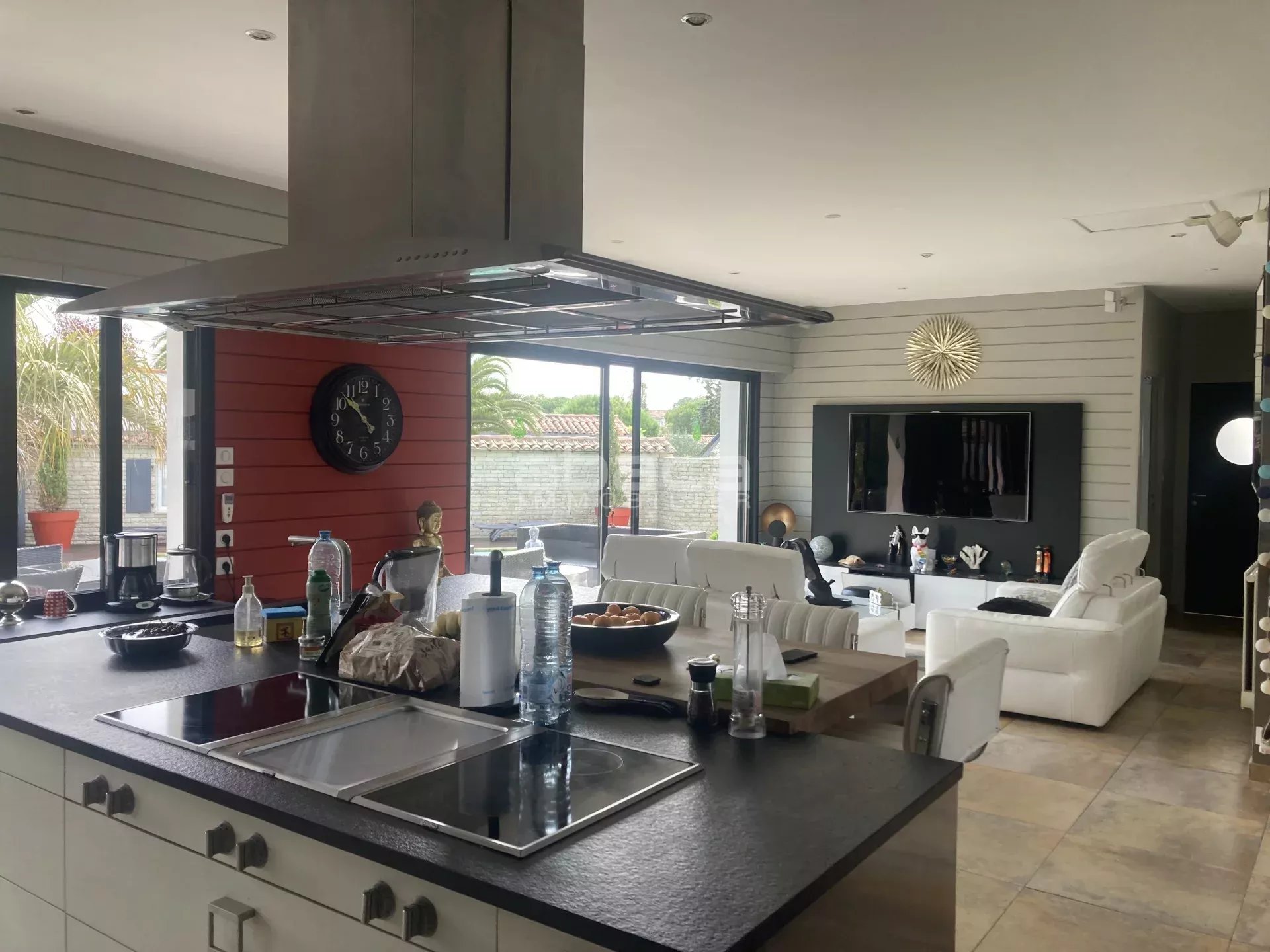 Pièce de vie avec cheminée insert, cuisine US aménagée équipée, 4 chambres, arrière cuisine, buanderie. Grand Garage et stationnement. Beau jardin paysager.